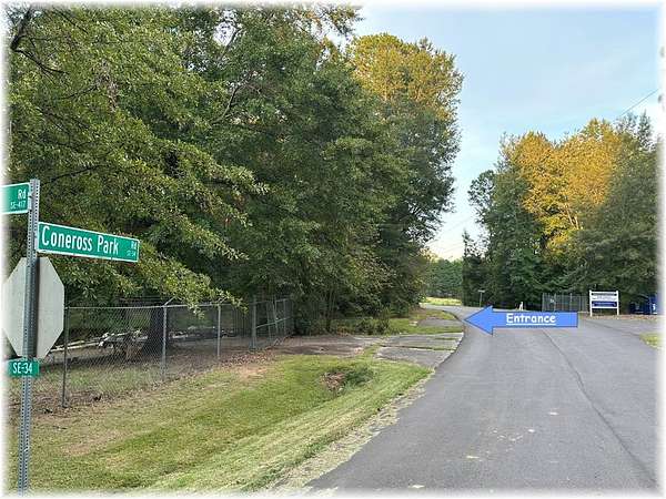 To GPS use; 523 Coneross Park Road Seneca. From Clemson W. Cherry to Martin Creek Rd to Coneross Creek Rd to Coneross Park Rd. From Seneca take Highway 59 to Highway 24 left onto Coneross Creek Road, then right onto Coneross Park Road. Lot on left.