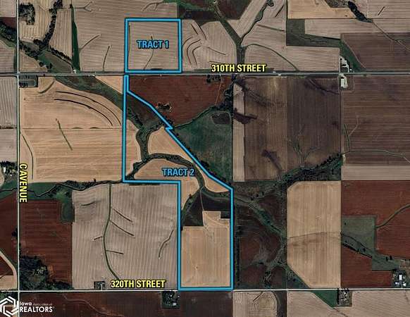 From Conrad, Iowa: Travel west on 330th Street for 1.5 miles until reaching State Hwy 14. Turn right on State Hwy 14 and travel north for 2 miles until reaching County Hwy D65. Turn left onto County Hwy D65 and travel west for 3.5 miles. Tract 1 will be located on the north side of the road.