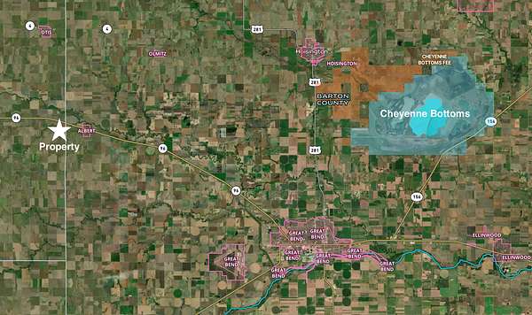 15 miles west of Cheyenne Bottoms Refuge