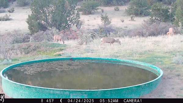 Being located in the heart of Unit 136 of the Plains Elk Units provides for the most liberal elk tags in the country with a 5 month season (September 1-January 31). Hunters can purchase unlimited tags, per hunter, in a single season, either sex, and weapon of choice, including rifle. 300+ trophies are taken annually, with monster mule deer and an occasional whitetail and pronghorn. Plains bear are abundant, tags are over-the-counter (September 2-November 24) with an excellent Merriams turkey population and the occasional mountain lion. Hunting rights convey for 2025 season.