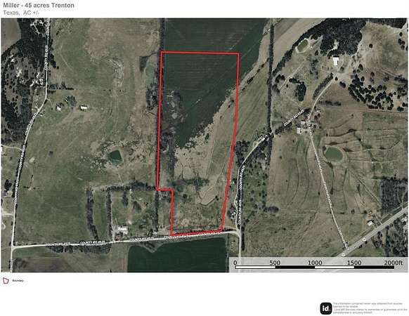 Est $5,307/moBeautiful 45-acre tract in Trenton, TX offering the perfect setting for your dream home. This property features wide open space, peaceful surroundings, and plenty of room for a custom home, barn, shop, or livestock. Enjoy country living with easy access to nearby highways for a convenient commute. Whether you’re looking to build now or invest for the future, this is a great opportunity to own a versatile piece of land in a growing area.