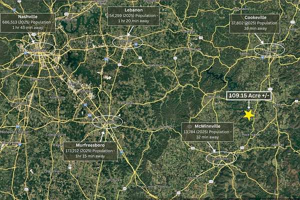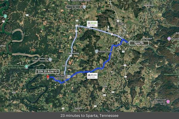 Don't miss this rare opportunity to own 109 UNRESTRICTED acres in scenic Walling, TN! The sellers are actively securing a deeded easement to ensure safe and reliable access. This expansive, wooded paradise offers the perfect blend of seclusion and potential. Cliff Creek meanders through the property, eventually feeding into the beautiful Caney Fork River just mins away. With rolling hills, some flat spots, varied elevation, and dense woods, it's a dream setting for hunters, campers, or anyone craving a private escape into nature. Marketable timber offers income potential for those looking to log. Located just 15 minutes from Rock Island State Park, 20 minutes to downtown Sparta, 35 minutes to Cookeville, and only 1.5 hours from Nashville International Airport. Whether you envision an off-grid retreat, a hunting haven, or simply a smart investment, this land delivers on all fronts. Come explore the possibilities and see the raw beauty for yourself-your Tennessee adventure begins here!