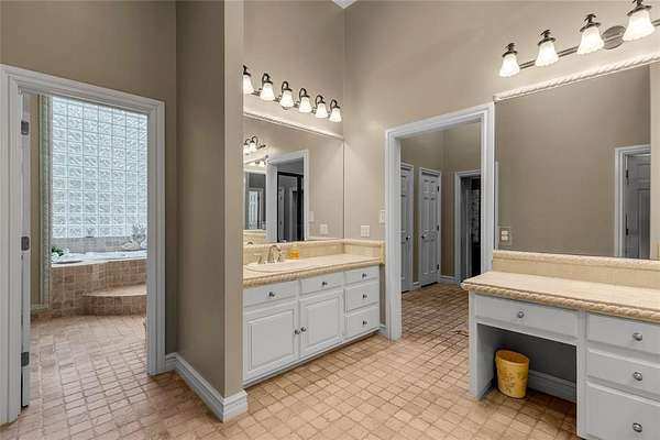 - Built-In Features, Cable TV Available, Cathedral Ceiling(s), Chandelier, Decorative Lighting, Eat-In Kitchen, Flat Screen Wiring, Granite Counters, High Speed Internet Available, Kitchen Island, Multiple Staircases, Open Floorplan, Pantry, Second Primary Bedroom, Vaulted Ceiling(s), Walk-In Closet(s)