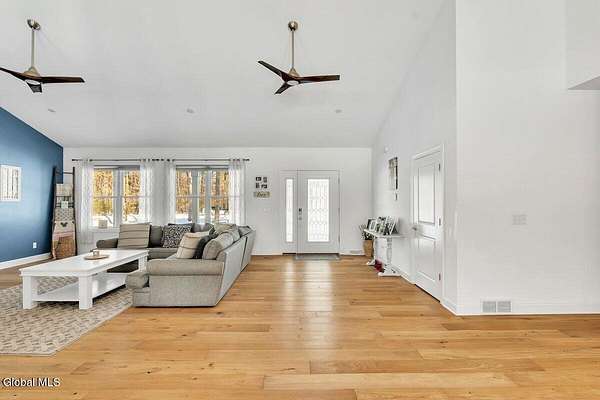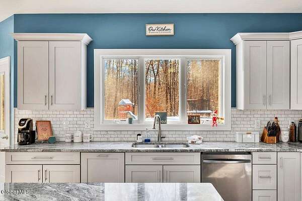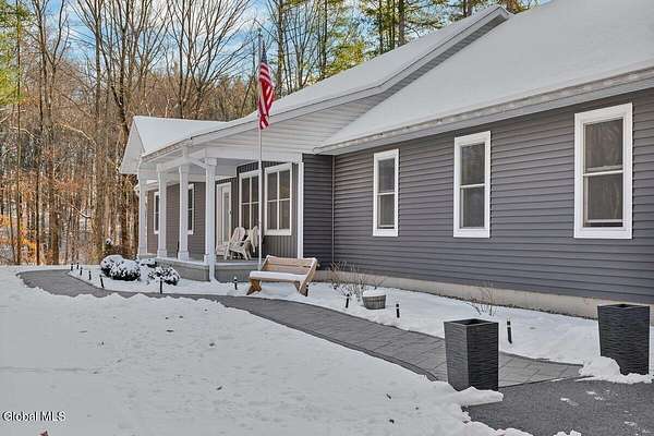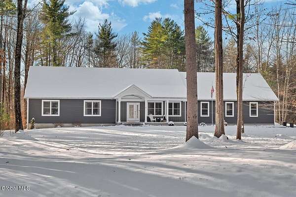 Open House Sunday 12/7, 12pm-2pm! Stunning Stillwater 2,595 sq/ft ranch built in 2020 with 5.19 acres! 3 bedrooms & 3 full baths all on the first floor. Home features a spacious great room with cathedral ceilings & hardwood flooring. Kitchen boasts large island with granite countertops, soft close cabinetry & stainless appliances. Primary suite with walk in closet & elegant bathroom. Cellular shades & recessed lighting throughout. Double sink vanities in primary and 2nd full bath. Mudroom, laundry room w/sink & full bath located conveniently on the 1st floor at the garage entry to the house. 1,128 sq/ft oversize garage with additional stairs to basement as well as interior entry to basement. Basement is ready to finish with 5 large windows, sheetrock & plumbing for a full bath. Tankless hot water heater. Gorgeous 224 sq/ft front porch & stamped concrete walkway. 10 min to Global Foundries, 5 min to Saratoga Lake!
