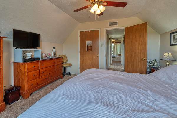 - Ceiling Fans, Fireplace, Main Level Primary, Pantry, Tub Shower, Walk in Closets