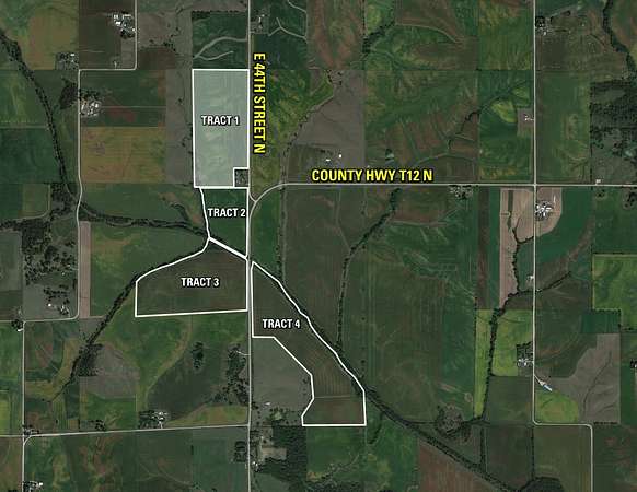 From the northeast corner of Newton, Iowa: Travel east on North 19th Avenue East for 1.5 miles until reaching County Highway T12 East. Turn left (north) on County Highway T12 East and travel north for 4 miles until reaching East 44th Street North. Turn left (northwest) onto East 44th Street North. Travel north on East 44th Street North for 0.25 miles. Tract 1 will be located on the west side of East 44th Street North. Look for signs.