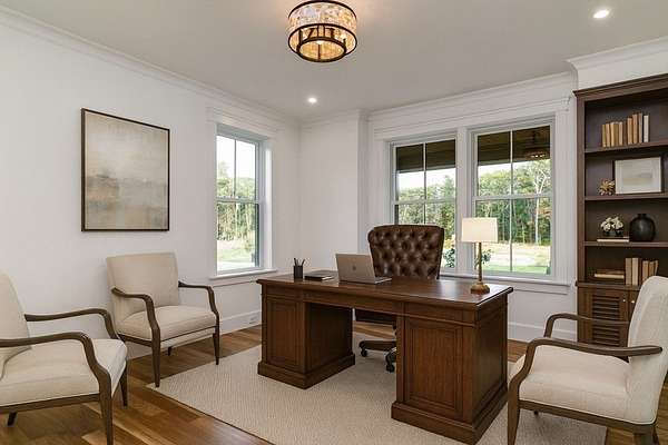 Welcome to 1 Emerald Drive, an exceptional new luxury home on Hopkinton's premier cul-de-sac of eight custom residences. Thoughtfully designed and impeccably crafted, this home blends timeless elegance with modern functionality. The open, light-filled layout showcases white oak floors, exquisite millwork and designer lighting throughout. The gourmet kitchen impresses with Thermador appliances, granite counters, and a custom walnut wood-accent island that adds warmth and artisan appeal. A spacious family room features a stunning feature-wall fireplace. The first-floor guest suite provides flexibility, while the second-floor primary retreat offers spacious walk-in closet and a spa-like bath with radiant heat, soaking tub, and frameless glass shower. The finished lower level with full bath extends living space for media or fitness. With town water/sewer, propane heat, a 3-car garage and meticulous detail, this home defines luxury living in Hopkinton.