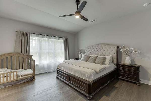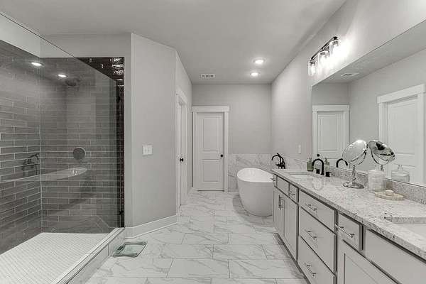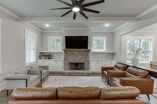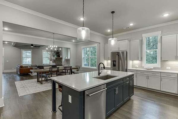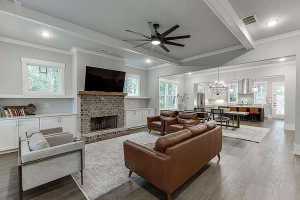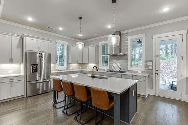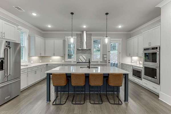 A Private Luxury Retreat on 2.72 Acres in sought after Old Town Estates Welcome to the breathtaking Gardenia Plan residence that redefines luxury living. Perfectly situated at the end of a winding, tree-lined driveway, this stunning two-story estate rests on a 2.72-acre private, wooded sanctuary, offering unmatched tranquility and timeless elegance-all just minutes from premier shopping, dining, and everyday conveniences. From the moment you arrive, the home's commanding presence and three-car garage set the stage for refined living. Step onto the inviting front porch or unwind on the covered back patio, where a cozy outdoor fireplace creates the perfect setting for year-round entertaining and relaxation amid nature's beauty. Inside, every detail has been carefully curated for the discerning buyer. The gourmet kitchen is a chef's dream, featuring a massive center island, walk-in pantry, and custom cabinetry with luxury finishes that flow seamlessly into the open dining area and spacious family room. Towering ceilings and doorways, tall baseboards, and designer lighting add architectural depth and sophistication throughout. A guest suite with a full bath on the main level provides ideal accommodations for visitors, while a large mudroom offers stylish functionality for everyday living. Upstairs, the primary suite is a true retreat-complete with his and hers closets, a spa-inspired bath, and views of the serene wooded grounds. Two additional generously sized bedrooms, each with its own private bathroom, and a bonus room provide the perfect combination of comfort, space, and versatility. This exceptional property harmonizes luxury craftsmanship with the peace of nature, creating a home that is both a private haven and a statement of elegance. Don't miss the opportunity to experience this remarkable residence-a rare blend of sophistication, privacy, and refined design.