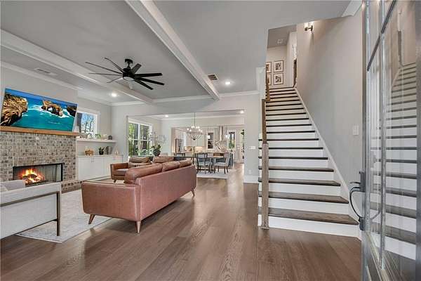 - Beamed Ceilings, Bookcases, Crown Molding, Disappearing Attic Stairs, Entrance Foyer, High Ceilings 10 ft Main, High Ceilings 9 ft Upper, High Speed Internet, His and Hers Closets, Recessed Lighting, Walk-In Closet(s)