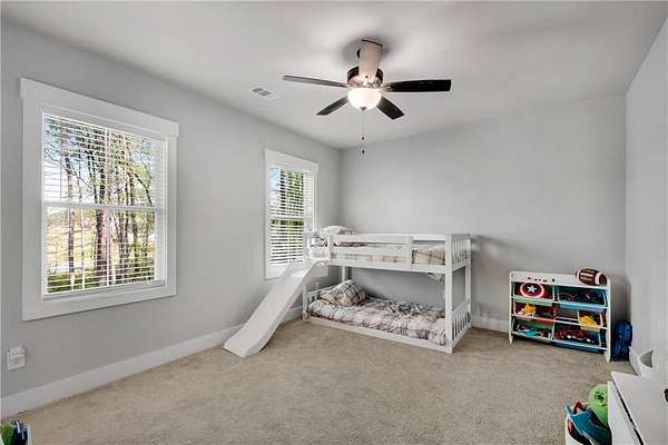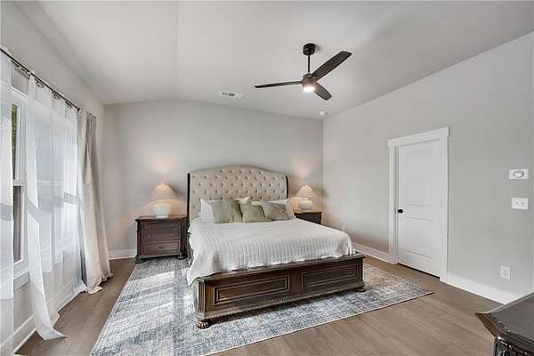 Up to $15k Buyer Incentive w/Preferred Lenders* Looking for space and privacy? You have found it here on this just under 3 Acre Cul-de-sac lot! Vision Home Crafters LLC's "Gardenia" Plan with optional Flex Room and black window package! True wrap around rocking chair front porch to enjoy looking at the trees! Foyer opens to main level with wide plank hardwood flooring, craftsman style trim package, 10' ceilings and 8' doors! The great room features a brick wood burning fireplace, built-in cabinets and beamed ceiling viewing the formal dining area. A true chef's island kitchen boasts gas cooktop, stainless vent hood, double ovens, ample cabinet drawers, trash drawer and a huge custom pantry. Off the dining room hallway there is a bump out already set up with counter top height outlets for future butler's pantry or dry bar. Hard to find plan features a guest bedroom on main with private bath featuring a tile shower + separate half bath off main hall for guests. Mud lockers located off side entrance. Hardwood stairs lead to upstairs hallways where the wide plank hardwoods continue through the Primary suite w/His & Her closets, double tile super shower and free standing tub. Both upstairs bedrooms feature PRIVATE tile baths. Upstairs tile laundry w/mud sink and cabinets. Rear covered patio w/wood burning fireplace!