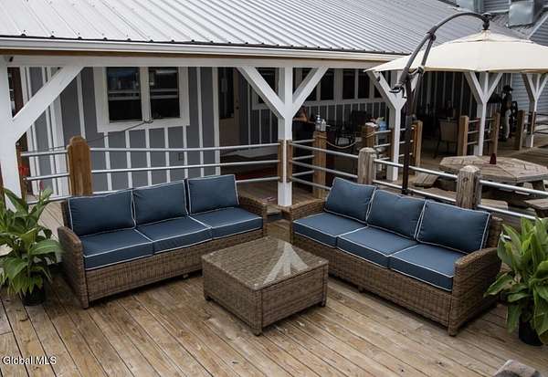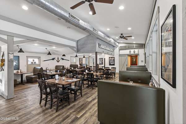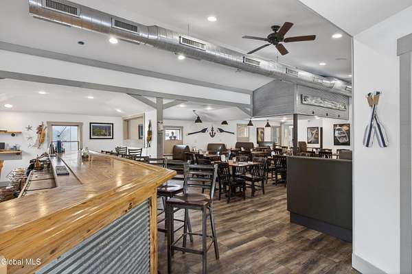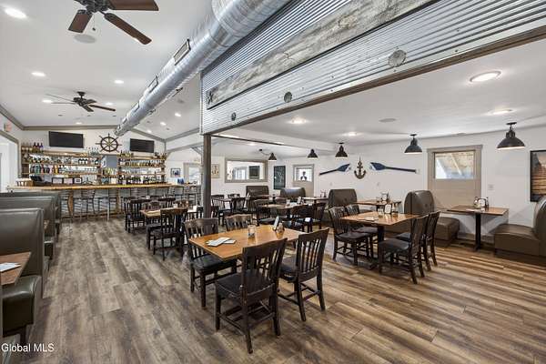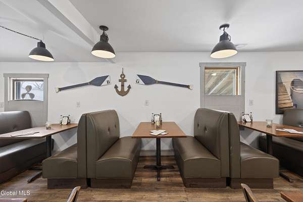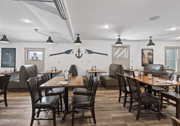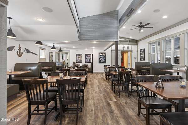Rare opportunity to lease a turnkey, well-established waterfront restaurant located at the Schuyler Yacht Basin, Marina, and Cabin Resort on the historic Hudson River. The Basin Grill operates as a fresh seafood bar and grill with an informal steakhouse and diner-style concept, offering seafood, salads, sandwiches, prime rib, comfort foods, and draft beers. The restaurant features both indoor and outdoor dining and bar areas, including a scenic outdoor deck with ample seating, Adirondack chairs, fire pits, tiki torches, and a tiki bar, creating a relaxed and inviting waterfront atmosphere. The layout is well suited for casual dining, strong seasonal traffic, and special events. The landlord has successfully operated the restaurant for the past eight seasons and is now shifting focus toward the expansion and development of campground operations on the property. This creates a true turnkey leasing opportunity for an experienced operator to step into a proven destination while benefiting from marina traffic, scenic river views, and increased activity generated by the expanding campground. Additional upside includes potential for upstairs apartment rentals. There may also be an opportunity for a buyer to purchase real estate within the larger parcel, subject to terms and availability.