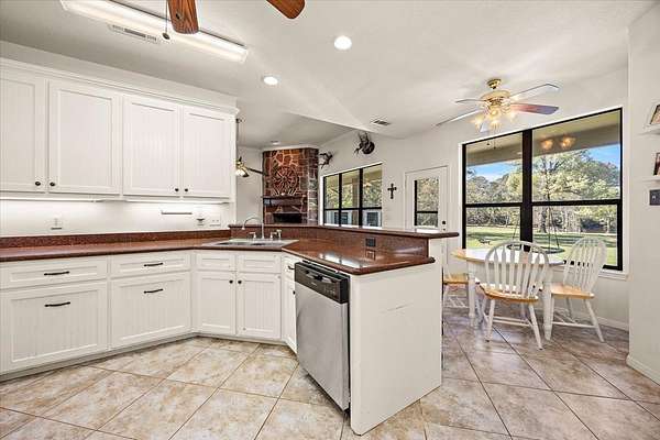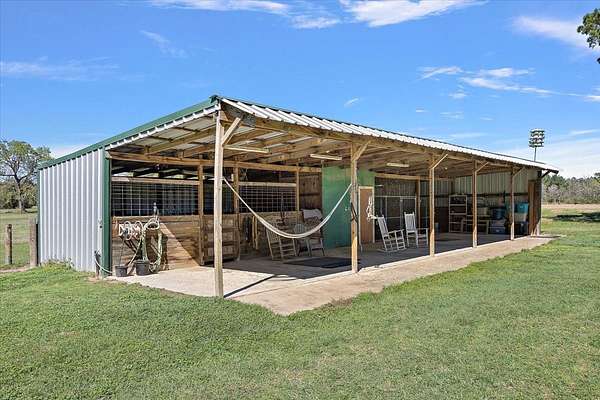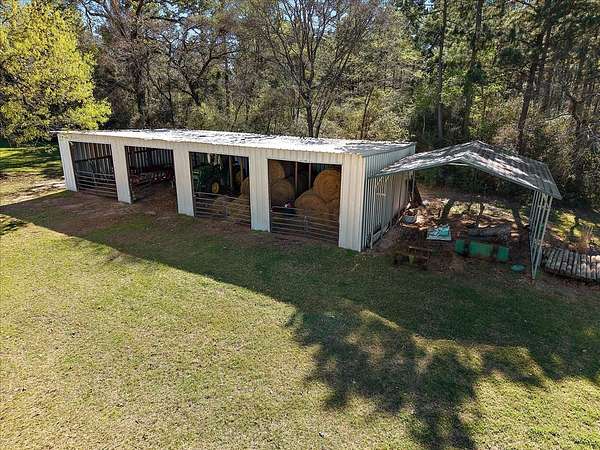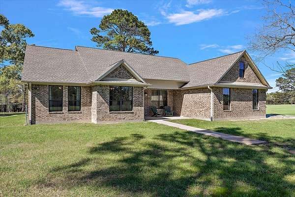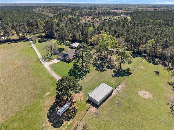 Stunning 3-bedroom, 2.5-bath home set on 49 picturesque acres! Thoughtfully constructed with a full brick facade and a spacious, open interior. The primary suite is filled with natural light and features ample space for a sitting area, along with a generously sized ensuite bath. Formal living and dining areas provide flexible space-perfect for a home office, playroom, or additional entertaining. The family room includes a cozy wood-burning fireplace and large windows that frame views of the backyard. The home is completed by two additional bedrooms with a shared bath for family or guests. Step outside to find multiple barns suitable for storage, equipment, or animals. The property features several ponds, mature hardwoods, and towering pines. A magnificent pecan tree sits in the front yard, along with others that provide your own annual crop of pecans. Pastures are cross fenced providing an area for cattle or horses and a hay field.