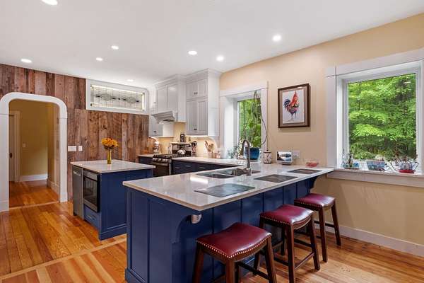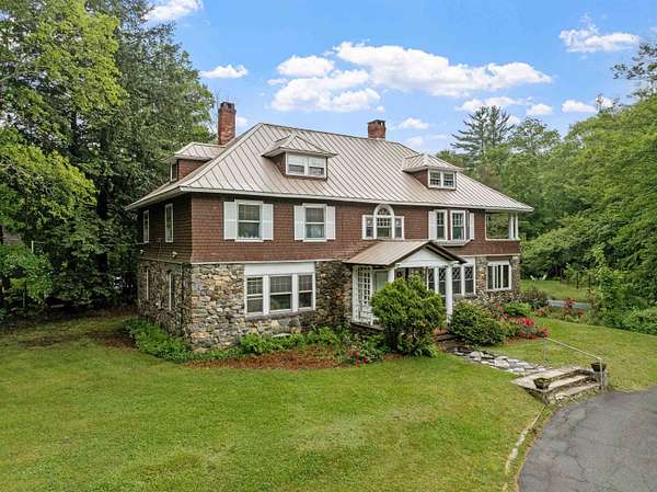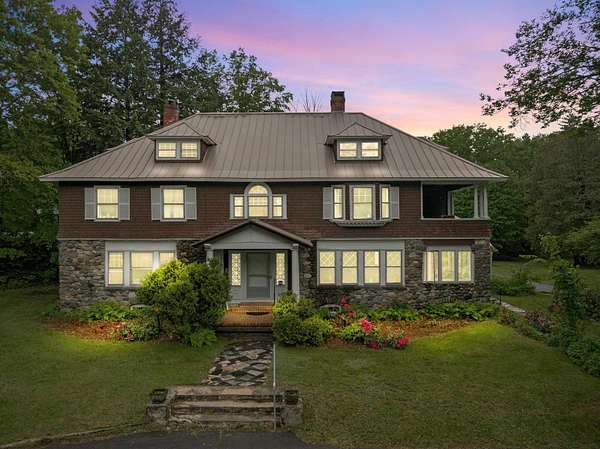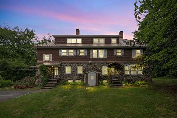 BUILT DURING THE GILDED ERA THIS BEAUTIFUL MANSION ON OVER 5 ACRES HAS UNLIMITED POTENTIAL AS A LUXURIOUS PRIVATE ESTATE, A COUNTRY INN OR AN INCREDIBLE WEDDING VENUE. Timeless Grandeur Meets Modern Luxury: Step into a world where historic elegance and modern convenience coexist in perfect harmony. Nestled at the end of a serene cul-de-sac, this 1902 Arts and Crafts stone mansion offers the ultimate countryside escape, while inside, the gourmet chef’s kitchen is a masterclass in both function and style. Entertain guests in the grand dining room while preparing meals with two ovens, dual dishwashers, a drawer microwave with convection and air fryer settings, two sinks, and abundant space for entertaining. Just a five-minute stroll from downtown’s restaurants & the renowned 1898 opera house, this is country living with a cosmopolitan twist. Painstakingly preserved and thoughtfully updated, this architectural treasure is framed by lush, wildlife-rich acres where foxes, deer, eagles, and even the occasional black bear roam freely. A babbling brook winds through the property, while the expansive outdoor stone party pavilion and summer kitchen invite unforgettable gatherings under the stars. Adjacent to the kitchen, a grand library offers a cozy sanctuary for quiet reading or creative inspiration. The finished lower level hides a speakeasy-style party room—perfect for intimate celebrations or vintage flair—while a new furnace, updated septic, metal roof, ensure peace of mind for years to come. Escape the hectic pace of city life and come home to timeless tranquility, where every detail’s a story and every day feels like a retreat. No drive bys.