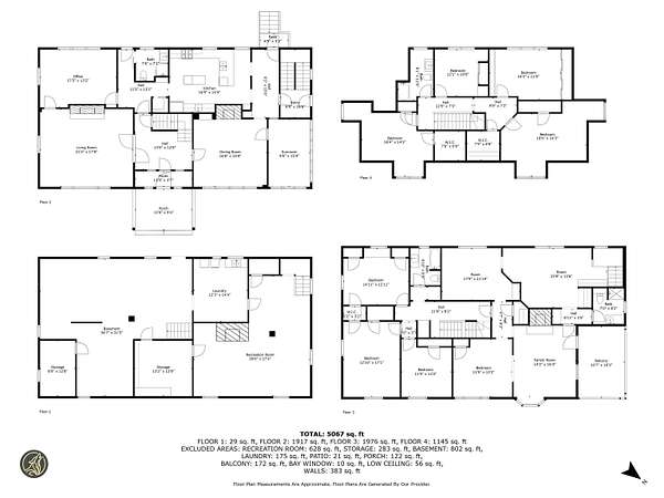 - Basement, Bathroom x 4, Bedroom x 5, Dining Room, Exercise Room, Family Room, Kitchen, Library, Living Room, Office