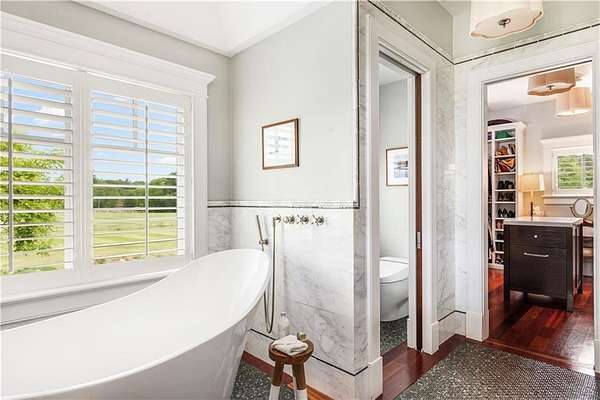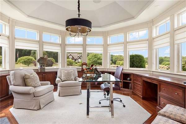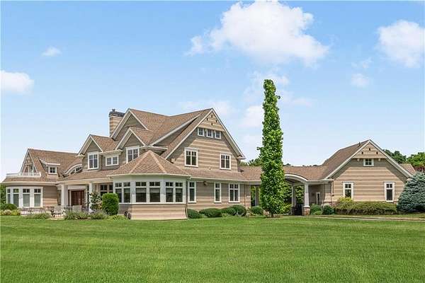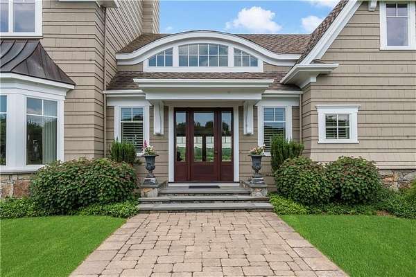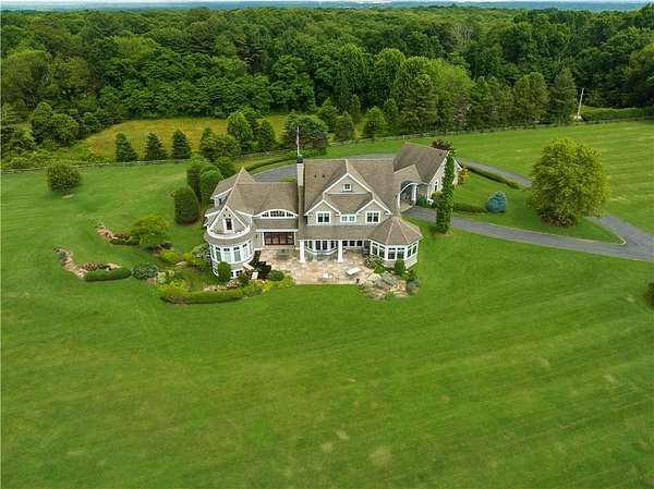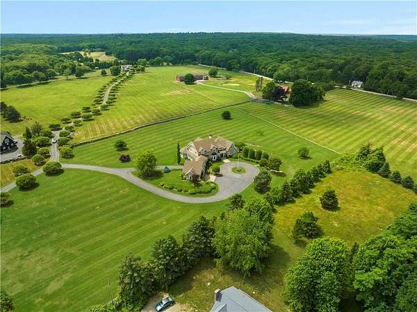 Gerald's Farm is an elegant country compound nestled in a rolling landscape with tree-lined valleys and manicured lawns. The main estate house, one of the property's 3 buildings, is the epitome of a refined rural retreat. Enter the soaring foyer with its marble pool and wall of French doors overlooking the gardens. The home's main living spaces welcome the outside in through stunning fenestration and an airy, open feel. The spacious chef's kitchen has custom cabinetry, marble countertops, and top-of-the-line appliances. A 1st-floor primary suite with a spa-like ensuite bath makes this the perfect multi-generational property. Up the graceful, winding staircase are 3 more generous bedrooms, 2 marble-clad baths, and a home gym. Continuing out to the park-like grounds, you discover a separate, 2-story carriage house with a dramatic vaulted main hall, ideal for entertaining on a grand scale. Above is a full in-law apartment allowing for a gracious guest suite. The crowning touch is an Amish-built barn featuring a sprawling terrace and fire pit, enhancing the already exceptional list of outdoor amenities. Situated at the crossroads of Exeter, North Kingstown, and East Greenwich, this home is positioned for taking full advantage of Southern R.I.'s natural beauty. Enjoy unparalleled privacy plus easy access to Providence, Boston, and New York. This is a once-in-a-lifetime opportunity for serene country living in one of the region's finest estates.