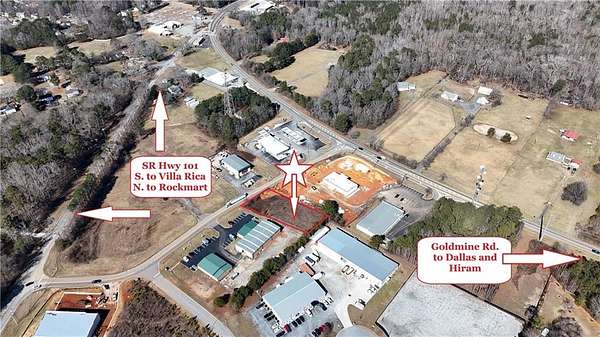 These are getting tougher to find! This .54 acre located in the Golden South Business Park is one of the last lots not built on. Zoned B-2 this is one of the most flexible and encompassing zoning categories in Paulding County, including auto repair, equipment repair, pet grooming, and flex buildings. Lot is at grade and ready to build. Located at the confluence of SR Hwy 101 and Goldmine Rd. location is perfect for servicing the areas of Dallas, Hiram, Villa Rica and Rockmart. Lot adjoins new C-store under construction and Dollar General. Incredible traffic counts in this area!