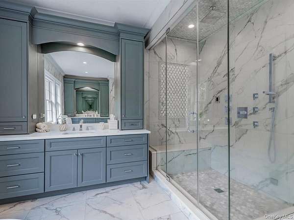 Set in the prestigious enclave of Sands Point, this magnificent 6-bedroom, 7 full bath, 2 half bath estate offers timeless elegance, modern luxury, and everyday comfort. Beautifully landscaped grounds frame a home designed for both grand entertaining and relaxed living. A dramatic entry welcomes you to expansive formal and casual living areas, all adorned with radiant heated Italian porcelain and rich walnut oak floors. The gourmet chef's kitchen features top-of-the-line appliances, custom millwork, and elegant dining spaces ideal for hosting. The luxurious primary suite is a private retreat, complete with a double-sided fireplace, a cozy sitting room, spa-like bath, and bespoke dressing areas. Each additional bedroom offers en-suite baths for privacy and convenience. The finished lower level is an entertainer's dream, boasting a fully equipped wet bar with ice maker, dishwasher, and dual refrigerators, alongside a home theatre, wine cellar, and gym. Integrated Sono speakers throughout the interior and exterior spaces provide immersive sound for every occasion. Blackout remote control shades throughout the home offer effortless light management and privacy at the touch of a button. State-of-the-art upgrades include a generator, whole-house air and water purification systems, and a camera/alarm security system. For added convenience and future expansion potential, electric service is extended all the way to the end of the property. Outdoor living is elevated with expansive patios, manicured gardens, and a 3-car garage. A built-in sprinkler system ensures lush, low-maintenance landscaping year-round. Residents enjoy exclusive beach and mooring rights, plus convenient access to Manorhaven Beach Park-a scenic 20-acre waterfront destination offering walking trails, sports facilities, an Olympic-sized pool, and year-round recreation. With private beaches, country clubs, golf, and yacht clubs just minutes away, this estate captures the very best of Long Island's Gold Coast lifestyle.