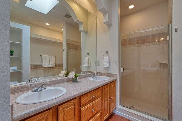 - Beamed Ceilings, Breakfast Bar, Ceiling Fans, Dual Sinks, Entrance Foyer, Fireplace, Great Room, High Ceilings, High Speed Internet, Jetted Tub, Living Dining Room, Main Level Primary, Pantry, Skylights, Walk in Closets, Water Closets