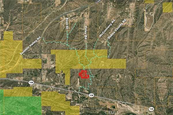 From I-15, take Hwy 138 east. The parcel is up in the hills north of Hwy 138 and east of Summit Valley Rd. It is north of, but not adjacent to, the houses at 13090 and 13150 Hwy 138. Coordinates of the land are 34.3266, -117.3784. Take the maps.