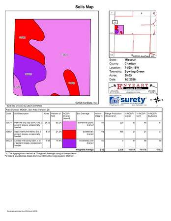 Est $2,729/moLocated 4.5 miles South of Dalton along the East side of Hwy J & North side of Namrash Rd. This farm is highly tillable (38.05 FSA tillable acres), has great access, & is made up of strong producing river bottom soils. A well maintained, low maintenance farm in an affordable price range for this area. Located near both the Missouri & Chariton Rivers, & just Southeast of the Dalton Cutoff, enabling possibilities for waterfowl development as well. Free & clear for 2026 planting season. At buyer's option, seller will offer a cash rent lease of $300/acre up to 3 years, allowing for an annual 3.17% ROI at list price.