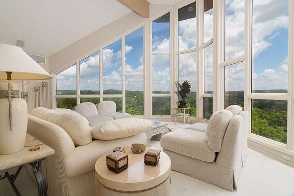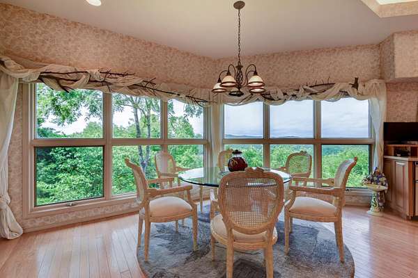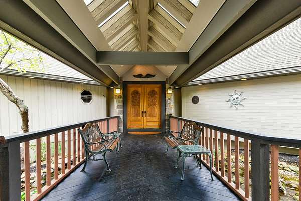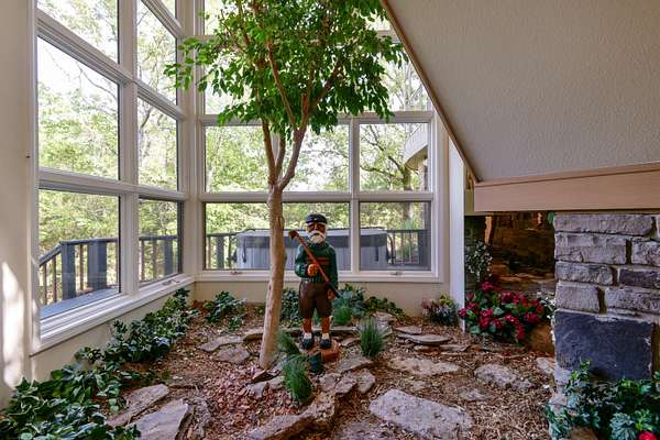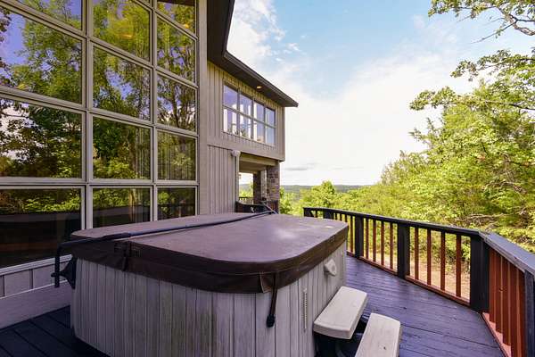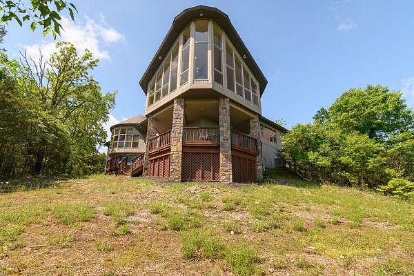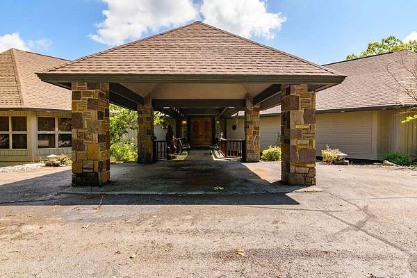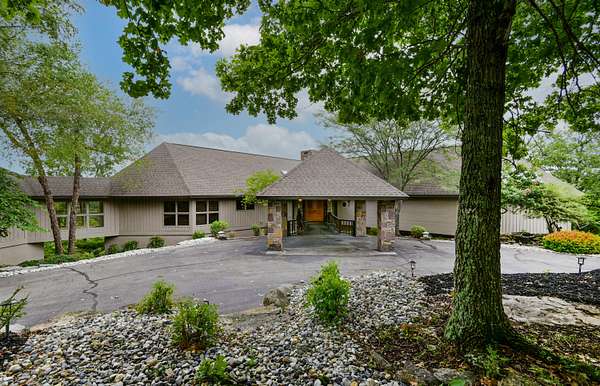 Ozark Mountaintop Retreat - EagleCrest. Come experience the panoramic views in all seasons as the Eagles do! The Gated entrance and winding drive through the trees, sets the stage for peace and relaxation from the covered bridge walkway to main entrance or the amazing Great Room with walls of windows, wood burning fireplace and the water curtain. Kitchen has casual breakfast nook and great work and storage space with 2 pantries, abundance of cabinetry in kitchen and formal dining room. Walkway from garage to kitchen is handy. Plus there is a small office space and laundry in the hallway. Plenty of privacy with four suites including the spacious master on main level with luxurious bath and walk in closets. Media room in lower level with projection tv that drops from the ceiling. Pool Table and Bar area is a gathering space adjacent to the Atrium. 3 Bedroom offer baths and walk-in closets and outside access. Plus there is an Exercise Room with views into the treed area. Spacious deck area for more outdoor living. The beauty of the Ozarks has been preserved with low maintenance landscaping, yet the pond and waterfall by front entrance adds to the tranquility. The 71 acres of land is three parcels and restricted to only one additional residence pe parcel. There are two POA dues charged at $181.75 each per month, which includes amenities of StoneBridge Village and LedgeStone Golf and Country Club.Furniture List of inclusions in documents.There is nothing that compares to this personal retreat, its' views, its' design and location. The PHOTOS are arranged for a quick peek at all rooms, then back to beginning with details. Be sure and watch both videos. Financial Qualifications required prior to showing.