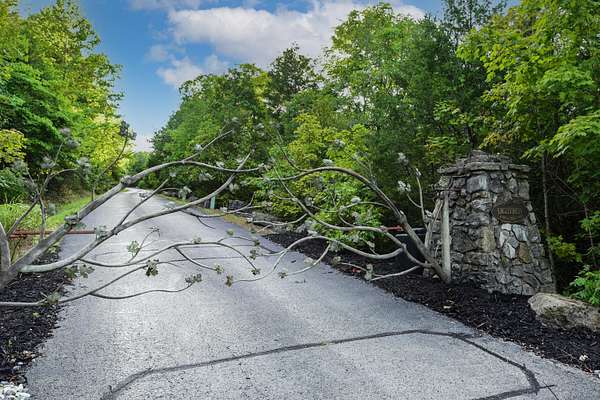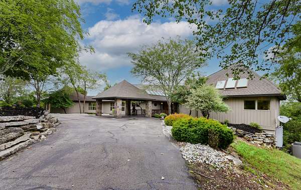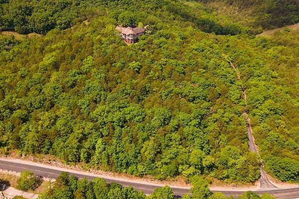 Hwy 76 in Branson West, enter StoneBridge Village main gate (with covered bridge) go thru gard gate follow StoneBridge Parkway, then across the street from the Country Club entrance you will see a GATED driveway, this is HULL RIDGE DR. Turn and go up the hill to the ONLY Home at the end.