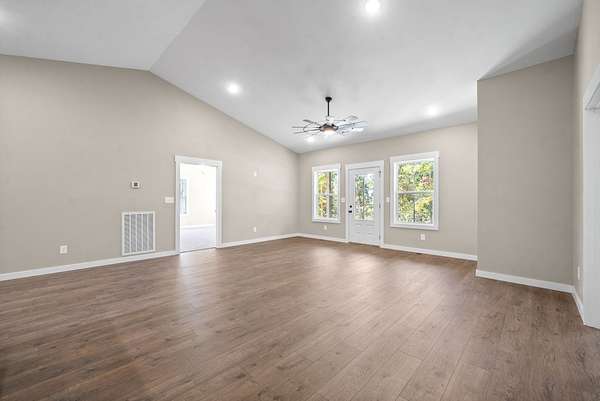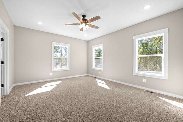 Pre-sold. This three bedroom, 2 bath ranch on 10 acres sits back on a private county road along the tree line. Some of the interior features are a walk in pantry, stainless steel appliances, laundry room attached to the primary bedroom, primary walk in closet, oversized tiled shower, granite counters, pendant lighting & LVP flooring. Spray foam insulation, an encapsulated crawlspace, 2 Ton 16 Seer LX series 2 stage Package heat pump add to the bells & whistles you will notice in this home. Exterior features are a covered front concrete porch w/ stained wood ceiling, rear covered porch w/ stained wood ceiling, concrete, leaf guards, flood lights, & plenty of trees for privacy w/ a creek along the side of the property. Pre-sold.