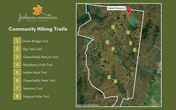 From Downtown Chattanooga: Take US-27 N. In 23 miles, keep left onto SR-111 N toward Dunlap. In 18 miles, turn left onto Tram Trail. Turn right onto Fredonia Road. In 4.2 miles, turn left onto John Henry Lewis Rd. Enter through the main gate. Please use a wayfinding app with longitude and latitude coordinates to find property.