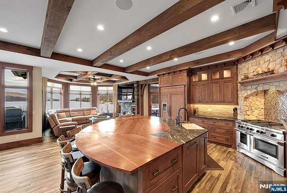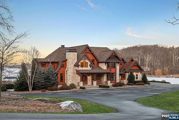 Experience luxury and tranquility in this custom-built estate on over 8 acres with 300 ft of pristine lake frontage and rare end-to-end views of Culver Lake. This 8,000+ sq. ft. home features an open-concept living space with soaring ceilings, a Great Room with a dual-sided fireplace, and floor-to-ceiling windows showcasing breathtaking lake and mountain views. The gourmet kitchen boasts an expansive island, stainless steel appliances, and a cozy sitting area with a wood-burning fireplace. The main level offers a serene primary suite with lake views, a spa-like bath, an additional en-suite bedroom, and a screened-in dining area. Upstairs are 4 en-suite bedrooms, 2 with private balconies, and a 2-story game room. The lower level features a theater, gym, sauna, custom wine cellar, and a 46' x 22' garage perfect for watercraft/outdoor equipment. Enjoy a private beach, 3 docks, a firepit, tennis & basketball court, bocce court & more. This one-of-a-kind retreat redefines lakefront living.
