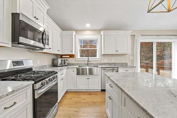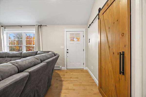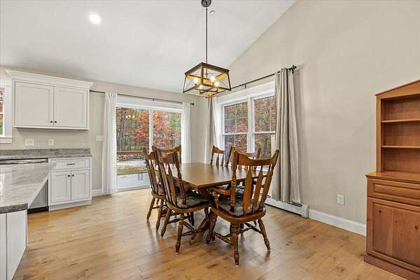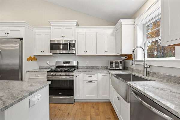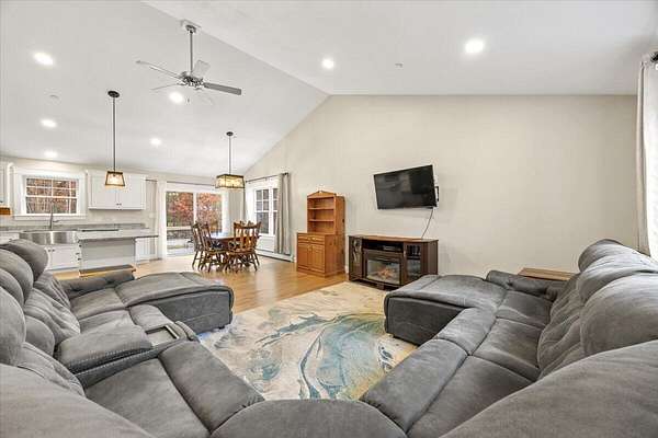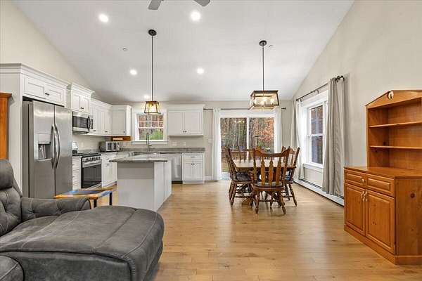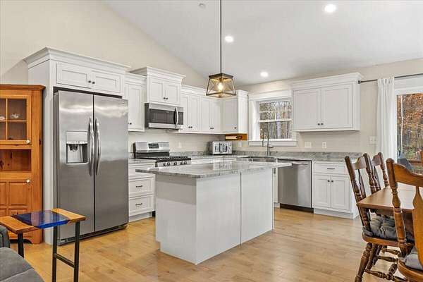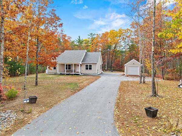Welcome to 1 Leona Drive in East Waterboro, where modern comfort meets the best of Maine living. Built in 2019, this stylish contemporary ranch sits on 1.84 acres within a quiet 6 home subdivision, offering privacy, convenience, and easy access to outdoor adventure. Step onto the inviting covered porch and into the heart of the home, where you'll find an open concept living area with vaulted ceilings, gleaming maple floors, and plenty of natural light. The kitchen impresses with granite countertops, sleek stainless steel appliances, and a deep stainless steel farmers sink, offering both style and functionality in a space that's perfect for cooking, gathering, and entertaining. The thoughtful layout includes two comfortable bedrooms plus a primary suite with a stylish ensuite bath. Enjoy ground floor laundry and the flexibility of a spacious basement ready for future expansion. The exterior has been enhanced with thoughtful upgrades, including a paved driveway, rear composite deck with wire rails, and a 12'x16' garage shed with power and automatic door openers. A generator hookup provides peace of mind during any season, while a pad for an RV with an exterior outlet adds even more versatility. There's also room to add an additional garage if desired. For outdoor enthusiasts, this location is a dream. The property connects to over 50 miles of ATV trails and is just minutes from Bob Fay Memorial Park and Gobiel Park, where you can swim, kayak, canoe, or jet ski, and make the most of Maine's natural beauty. Experience the best of Maine living at 1 Leona Drive, where single level comfort, thoughtfully designed spaces, and effortless style come together, all just moments from year round outdoor recreation and adventure.