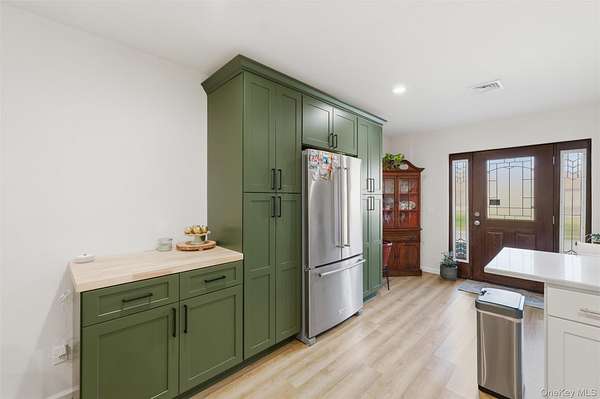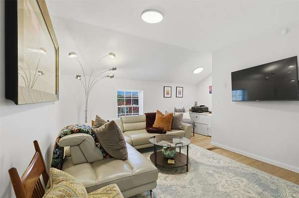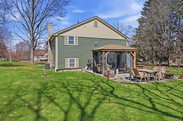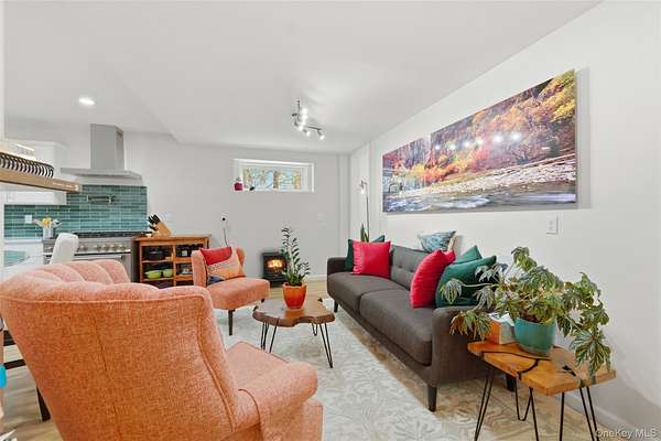 Welcome to worry-free living in this unique, fully renovated carriage-house-style home, perfectly designed for those seeking a turn-key retreat in the Hudson Valley. Renovated from top to bottom and inside out, this property offers hassle-free ownership with all major systems new. The interior boasts a complete transformation across two levels of living space. The all-new kitchen is a true chef's delight, featuring custom cabinetry, granite countertops, new floors, and premium appliances, including a professional-style vent/hood and a split-fuel range (gas cooktop, electric oven) for serious cooking. Three full-baths have been thoroughly modernized with new flooring, vanities, and ceramic and slate tile. Enjoy seamless flow with hardwood floors on the upper level, which includes an inviting family room and a highly convenient upstairs laundry area. The primary bedroom is a sanctuary, offering an ensuite bath and exceptional storage with two closets, all fitted with custom systems. Outside, all major components are newer to new, including vinyl siding, roof, well, and an updated septic system. Nestled on a quiet cul-de-sac, the home sits on a private 1.5-acre level lot with lovely grounds, mature trees, and a spacious patio--ideal for entertaining or peaceful relaxation. Situated in the Wallkill School District, the location is rural-adjacent yet provides excellent access to Route 300 and is minutes from top Hudson Valley attractions like wineries, hiking trails, and farm markets. Access is via a private drive maintained by a low-cost road association.