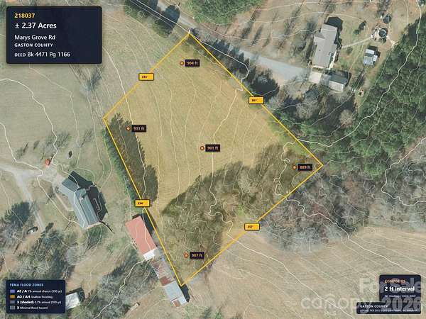 Est $428/moThis property contains 2.38 acres and is located in rural Gaston County off Mary's Grove Road. There is a right-of-way from Mary's Grove to the subject property.