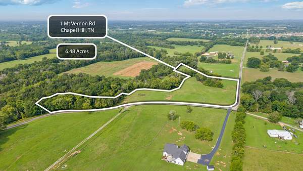 Est $2,551/moBeautiful rural setting to build your dream home. Long road and creek frontage. You will be surrounded by acreage tracts and farms yet convenient to I-840 in Triune. This is just outside College Grove, Chapel Hill, and Eagleville. Newly surveyed tract from a larger farm, so no address yet. Use address in directions. Please study the survey in the document section to see the actual shape of the property. What a great spot! The most likely building area is right next to the soil site. The drone photo markup doesn't reflect the exact shape.