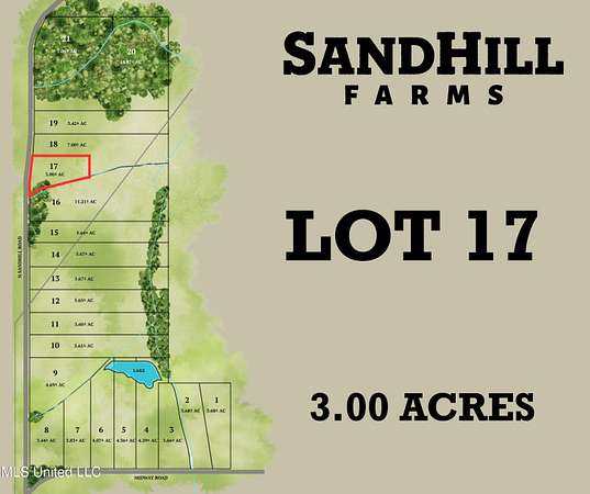 Est $738/moBeautiful 3.00-Acre Tract in SandHill Farms! Lot 17 Offers a Great Opportunity to Own a Spacious Homesite in One of Rankin County's Newest Rural Developments. With 3.00 Acres of Open Land, There's Plenty of Room for a Custom Home, a Shop, and Even a Few Animals. Located Less Than One Mile from Pisgah Schools and Just Minutes from Highway 25 and the Ross Barnett Reservoir, This Property Combines the Best of Country Living with Easy Access to Flowood. Minimum 2,500 SQFT to Build. Barndominiums and Shops Allowed. No Mobile or Modular Homes. More Lots Available!