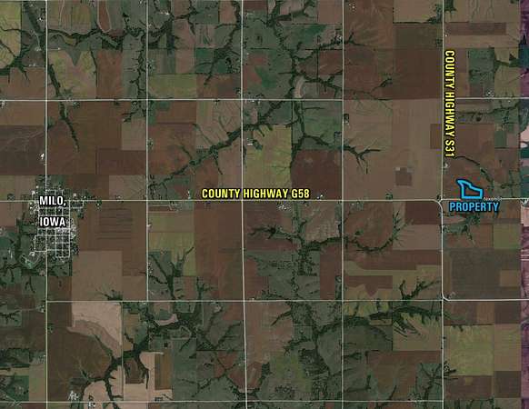 From Milo, Iowa: Travel east out of town on County Highway G58 for 3.75 miles until reaching County Highway S31. Turn left (north) on County Highway S31 and immediately turn right (east) on Nixon Street and travel for 0.25 miles. The property will be located on your left. Look for the Company Signs.