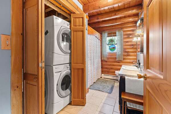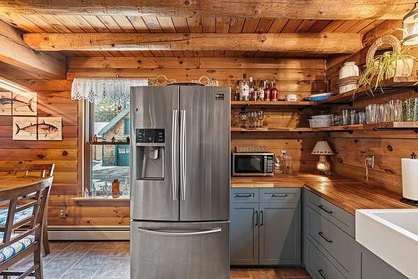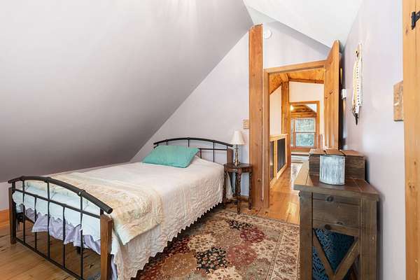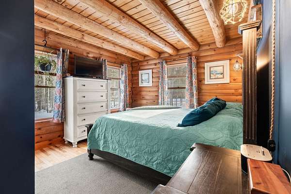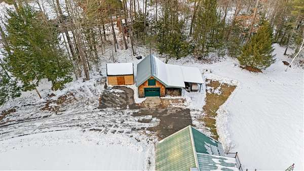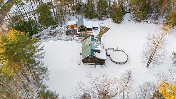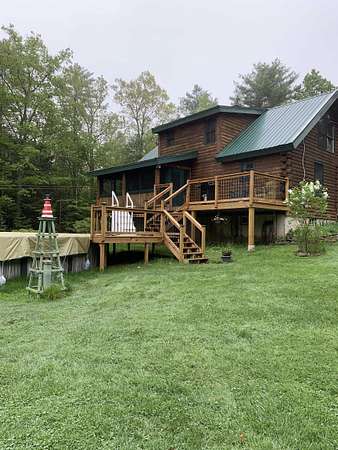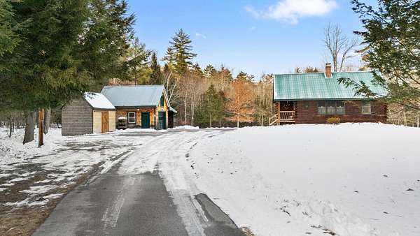 Dreaming of a well maintained log home on a beautiful lot in the desirable town of Nottingham? This is it! Set behind a stone wall and towering pines on almost 3 acres, this charming log home features three bedrooms and two baths. A covered entry, an open concept kitchen, dining, and living area all laid out perfectly around the wood stove. Offering single level living with first floor full bath, laundry, and primary bedroom with two closets. Upstairs you'll find two bedrooms-each with large closets/storage areas, and a 3/4 bath. Wood flooring throughout and an updated kitchen with stainless appliances and gas range. Soaring ceilings and wood details abound. Soak in the views of the yard and visiting wildlife on the 3 season back porch overlooking the large multi-level new deck and 26' pool- perfect for entertaining and relaxing! This property offers plenty of outdoor storage in the 10x16' cedar shake shed and oversized 1 car garage with carport and lean-to to store cord wood, tools, equipment, etc. Partially finished basement offers additional storage or living space! The corner lot is partly surrounded by SELT land further adding to the serenity of this property! Deeded access to Nottingham Lake, close to routes 125 and town beach, and Pawtuckaway State Park. Tucked away in the woods while being close to all the amenities in Epping and Lee. This one-of-a kind home must be seen to fully appreciate!