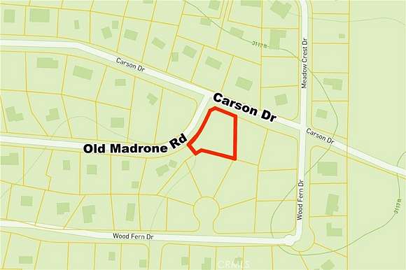 From Sacramento, take Hwy 16 east. Turn right on Hwy 49. Turn left on Ridge Rd. Continue straight on Carson Pass Hwy 88. Turn left on Carson Dr. The parcel is on the left. It is on the southeast corner of Carson Dr and Old Madrone Rd.