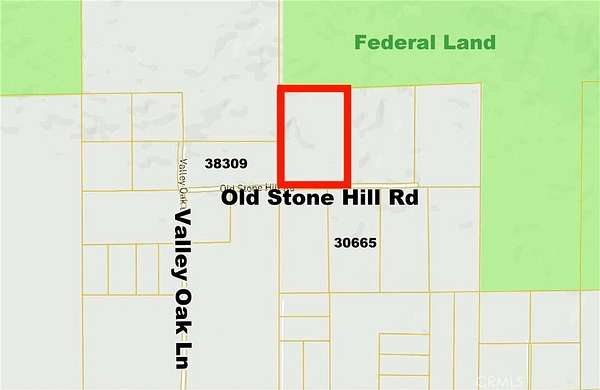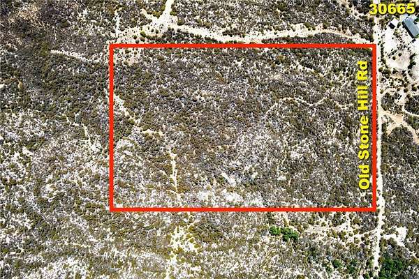 A 4-wheel drive vehicle is mandatory. From Hwy 79, turn east on Chihuahua Valley Rd. Turn left on Old Stone Hill Rd. Continue straight on Valley Oak Ln. Turn right on Old Stone Hill Rd. Drive 1312 feet, and the parcel will be on your left.