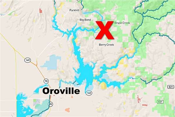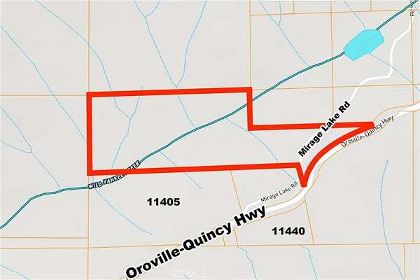From the Oroville area, take Hwy 162 Oroville-Quincy Hwy north. Turn left on Mirage Lake Rd. Go a few feet, and the property is on both the left and right of Mirage Lake Rd.