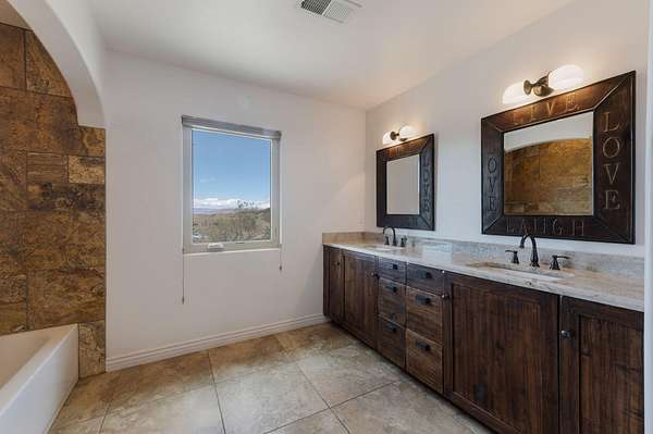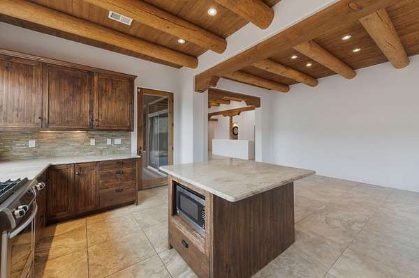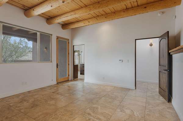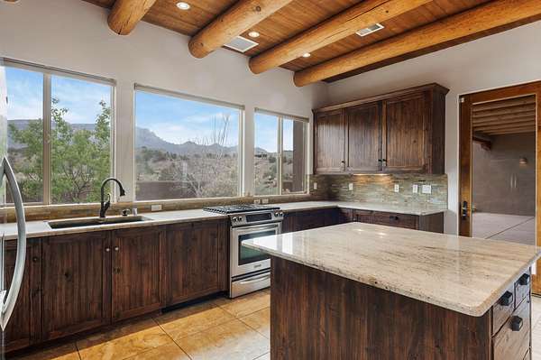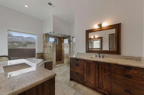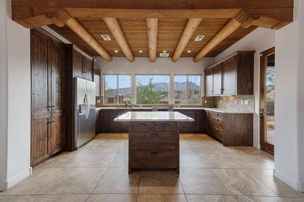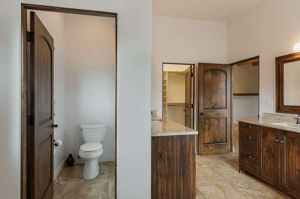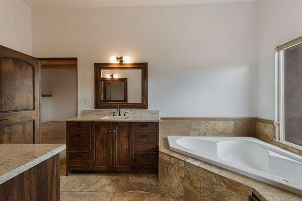 - Beamed Ceilings, Dual Sinks, Jetted Tub, Kitchen Island, Main Level Primary, Walk In Closets, Water Closets