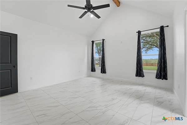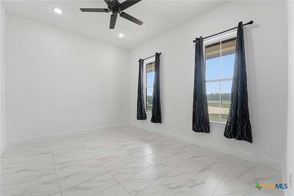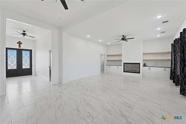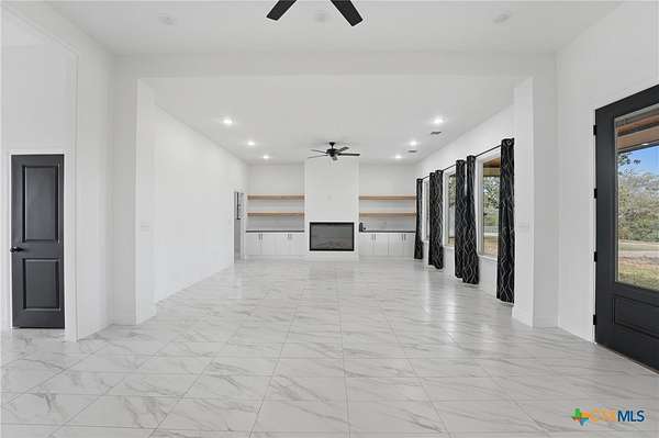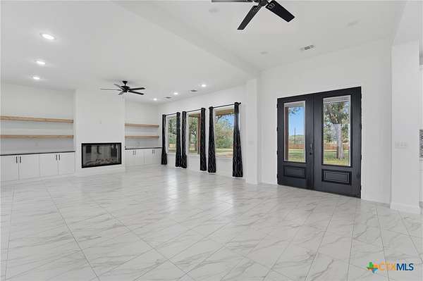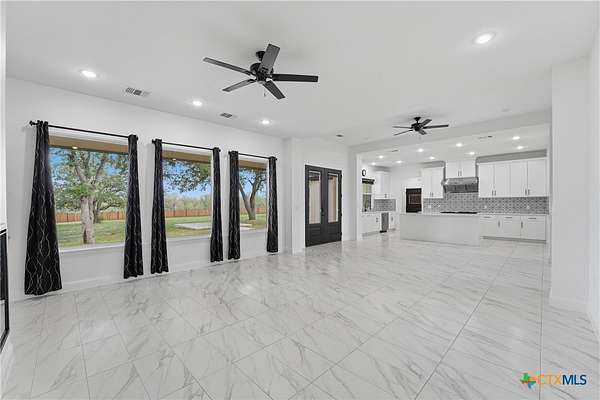 Welcome to 1 Post Oak St, your first impression as you arrive through Whispering Oaks Subdivision. Set among mature native trees on 1.66 acres, this fully fenced corner property offers a front circle drive, scenic surroundings, and room to expand-all while maintaining a peaceful, country feel just minutes from town. The lot features dual road frontage along Red Oak Circle and Post Oak St., allowing for flexible access and future layout possibilities. Inside, abundant natural light, all-tile flooring, and tall ceilings create a refined yet comfortable atmosphere. A grand foyer opens into a dramatic open-concept living, kitchen, and dining space designed for both entertaining and everyday living. The kitchen is anchored by an oversized gas range, center island, and walk-in pantry, flowing seamlessly into the spacious living area with a fireplace insert. Central A/C and heat and ceiling fans throughout provide year-round comfort. The main level offers 3 bedrooms, 2.5 baths, and a dedicated office, while a versatile flex/game room above the garage includes a full bath and mini-split system, accessible from inside the home and well-suited as a fourth bedroom, guest suite, or additional living space, adding an additional 385 square feet of living space. The finished 2-car attached garage is also equipped with its own mini-split, offering flexibility for a workshop, hobby space, or private retreat. Located just over 2 miles from Gonzales High School and situated within a deed-restricted community, this property blends modern craftsmanship with space, function, and thoughtful design.