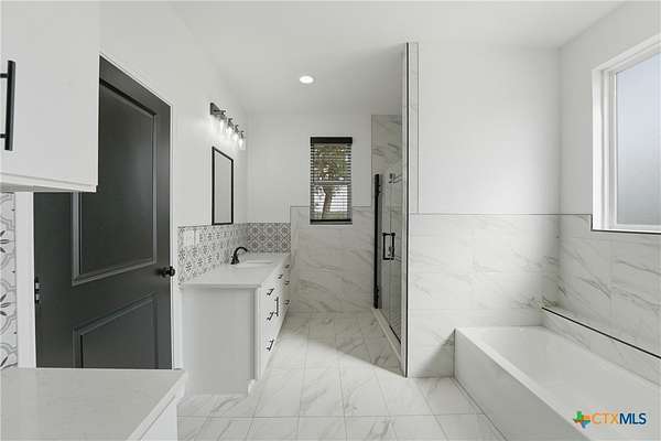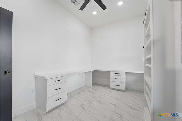 - All Bedrooms Down, Attic, Bookcases, Ceiling Fans, Entrance Foyer, Garden Tub Roman Tub, High Ceilings, Home Office, Kitchen Dining Combo, Kitchen Family Room Combo, Kitchen Island, Living Dining Room, Main Level Primary, Pantry, Primary Downstairs, Recessed Lighting, Separate Shower, Walk In Closets, Walk In Pantry