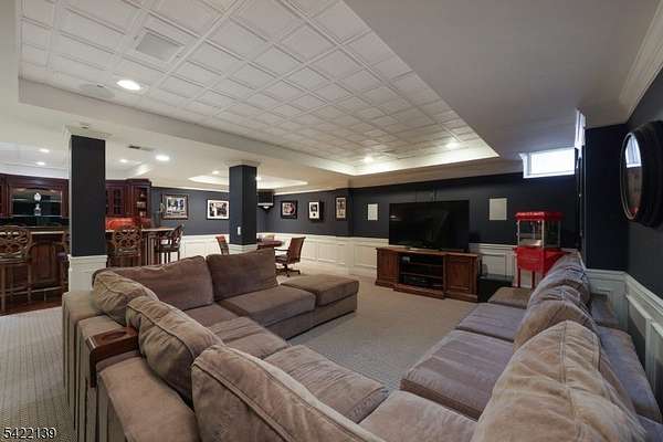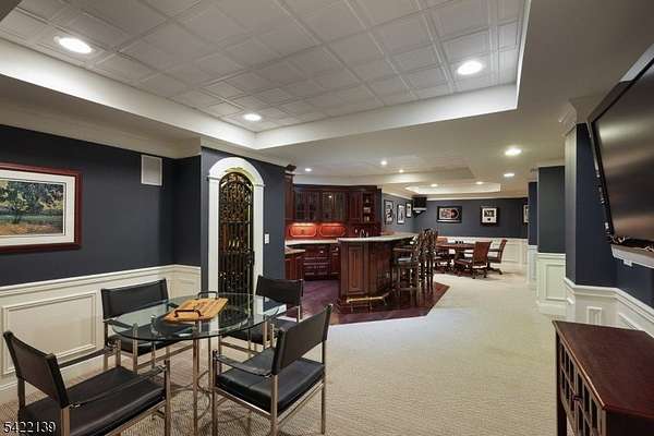 Welcome to this exceptional residence nestled on a breathtaking, park-like property that offers both privacy and serenity. This beautifully maintained home combines elegance, comfort, and functionality in every detail. Step inside to discover a thoughtfully designed layout featuring a spacious living room, formal dining room, and a private office-perfect for today's flexible lifestyle. The inviting family room is a true showstopper, highlighted by a stunning coffered ceiling and warm, welcoming ambiance. At the heart of the home is a gourmet kitchen, ideal for both everyday living and entertaining, complemented by a sun-drenched sunroom that brings the outdoors in and offers picturesque views year round. The fully finished basement expands your living space with incredible versatility, featuring a dedicated exercise room, full bathroom, multiple entertainment area, and a full bar-perfect for hosting gatherings or relaxing at home. Additional highlights include a whole-house generator for peace of mind and beautifully landscaped grounds that create your own private retreat. This is a rare opportunity to own a home that truly has it all-luxury, space, and an unbeatable setting.