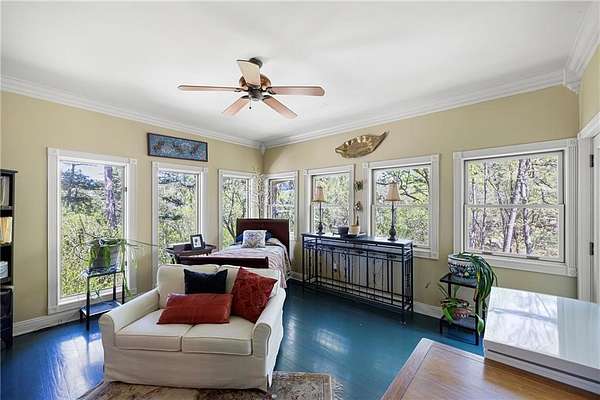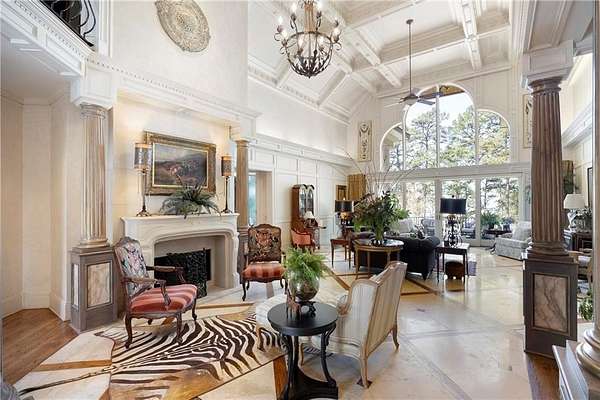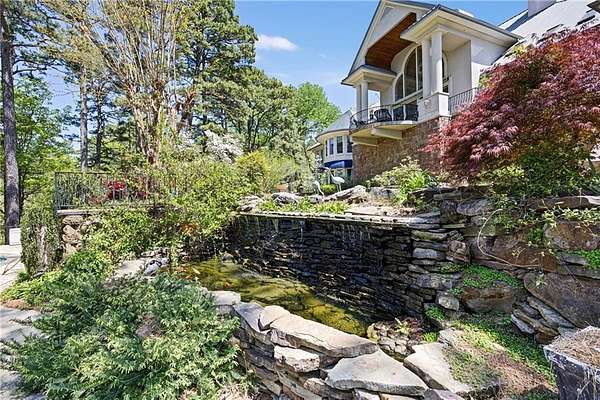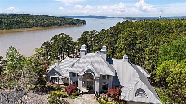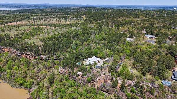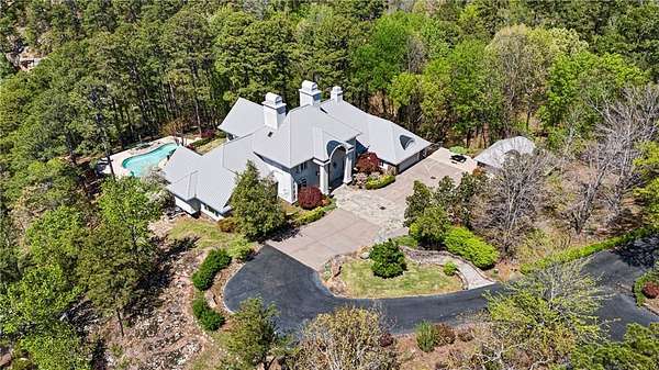 Renowned for its exclusivity and timeless stature, 1 Rim Rock Drive is truly in a category of one, surrounded by mature evergreens and hardwoods, concealed on its own end of a bluff. An iron security gate & towering iron doors set a tone of prominence for the entire property. This is amplified in the great room with heated marble floors, ornate columns, and floor-to-ceiling windows that introduce a remarkable view. This view can be taken in from the balcony, saltwater pool, and the rest of the manicured yard down to the bluff. Refined finishings and woodwork tastefully characterize the interior. The top level contains two bedrooms & their respective bathrooms. The main level consists of a great room, kitchen & pantry, lounge, dining area, living room, formal dining room, study, a guest suite, the master suite, and a half bathroom. The lower level is accessible by either an elevator from the lounge, or stairs, and serves as a spacious area to entertain, complete with a wet bar, full bathroom, and exterior doors.
