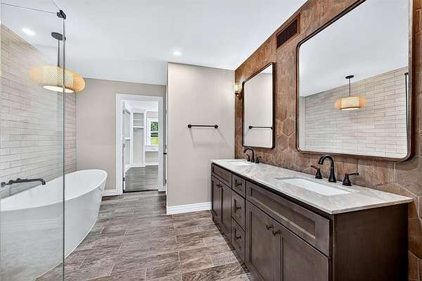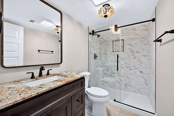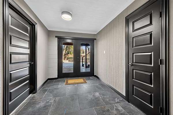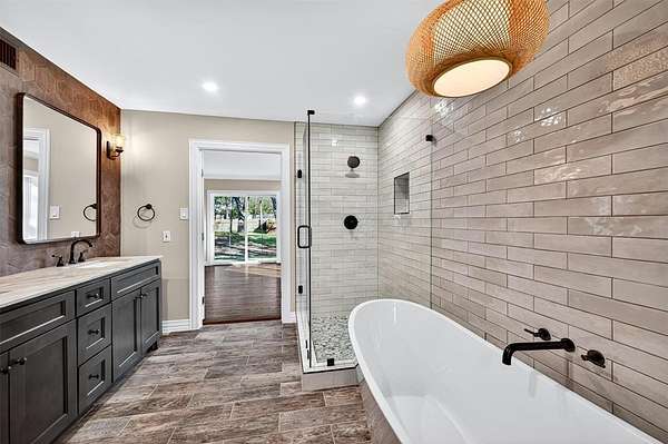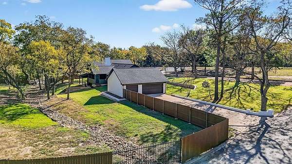 Step into timeless elegance with this essentially new 5-bedroom, 4.5-bath home, completely reimagined from the ground up. Gracefully situated on two wooded acres just outside the city limits, this stately residence underwent an extensive remodel, from underground to the roof, offering the peace of mind and modern comfort of new construction with its original charm. Boasting over 4,000 square feet, a versatile split-level floor plan with multiple living areas and a walk-out basement, perfect for a media room, game room, or private retreat. From the grand iron front door to the oversized 3-car garage, every detail reflects high-end craftsmanship. The kitchen and sitting room feature a vaulted ceiling with an exposed wood beam, adding warmth and architectural charm. Solid wood flooring flows throughout the spacious home, with a striking chevron pattern in the kitchen. The gourmet kitchen includes a gas range with vent hood, refrigerator, and all-new appliances. The breakfast area offers serene views of mature trees in the backyard and includes a butler's area for added convenience. The spacious pantry is tucked inside the light-filled laundry room, conveniently located off of the kitchen and includes a half bath. The primary suite is a true sanctuary with a cozy wood burning fireplace, private patio access, and a spa-inspired bath featuring a soaking tub, walk-in shower, and custom closet with built-in vanity. A second primary suite provides flexibility for multi-generational living or guest accommodations. Additional bedrooms are generously sized and thoughtfully placed throughout the home. Enjoy the expansive courtyard, ideal for a future outdoor kitchen and entertainment space. Located between the rapidly growing cities of Sherman and Denison, and 15 minutes from Lake Texoma, this home offers privacy without sacrificing convenience. HOA includes water and sewer. Truly move-in ready. A rare blend of luxury, function, and location. Schedule your private tour today.