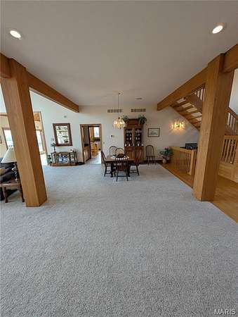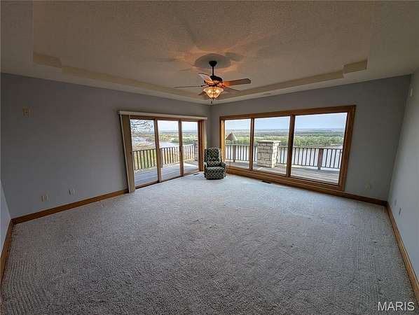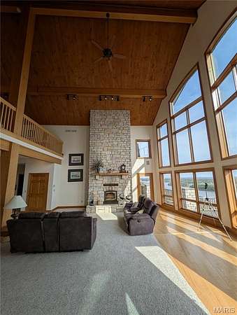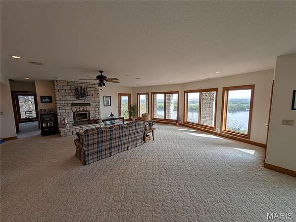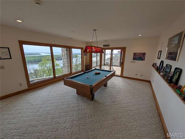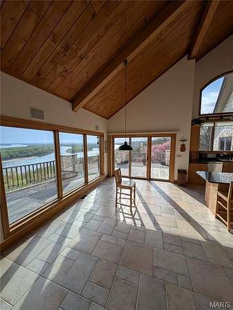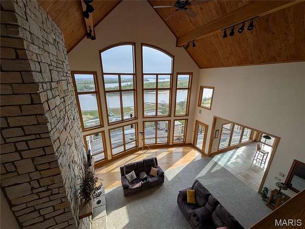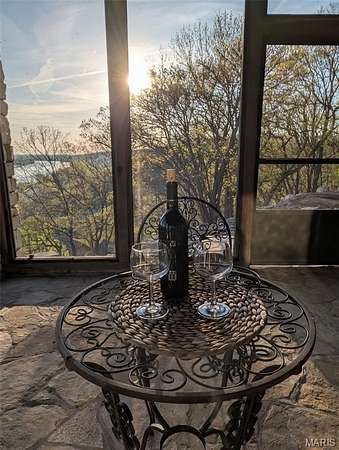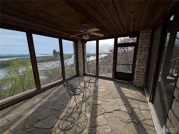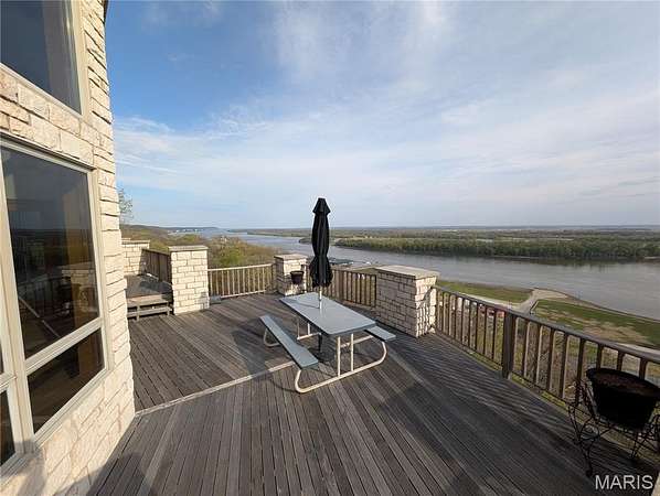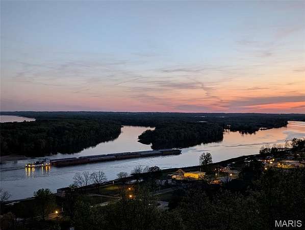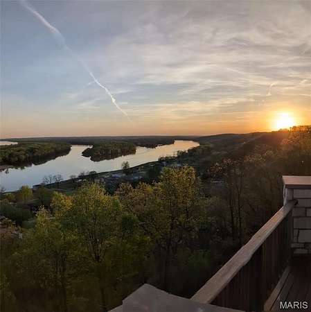 After a day of historic downtown entertainment, go up where the bluffs meet the sky and relax on the massive Palapi Brazillian Hardwood deck and drink a glass of wine and enjoy the spectacular view of the Illinois/Mississippi river confluence until you get the best sunset in all of Jersey county. Retire to your slumber in this 3 bedroom, 2 full, 2 half bath full stone masonry castle where eagles fly. Wake up and do it all again! Amazing views from every room. Massive 31' vaulted great room ceiling w/woodburning fireplace, open layout to dining & kitchen area. New granite countertops, all appliances stay. Plus coffee bar area. Main floor laundry mudroom off the oversized garage. Main floor primary suite with amazing view. Walkin closet w/organizer. Double bowl vanity w/separate soaking tub & tiled shower. Brand new marble tile flooring as well. Upstairs is an unbelievable loft office to work from home while you also enjoy the views. Climb the stairs again to the tower and drink your coffee and read a book at the rooftop view of the rivers. Venture downstairs and find the family room - pool room - and bar are for entertaining all with full glass views. Enclosed screen room. 2 more bedrooms with you guessed it - VIEWS! 2 geothermal units replaced in '21. Norweco aeration pumped & serviced '24, new gate '24, and new roof '25, primary bathroom total remodel '26. All of this on 5.01 acres. All showings to provide preapproval/proof of funds and be accompanied by listing agent.