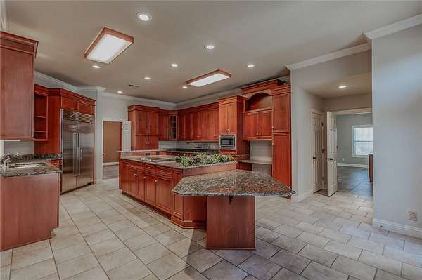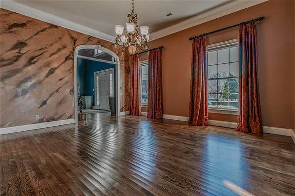 Incredible estate home located in a private gated subdivision on a 1.83-acre cul-de-sac lot, offering rare space and privacy while still minutes from I-49 and Pinnacle Hills amenities. The beautifully landscaped grounds create a park-like backyard setting with abundant space for entertaining, featuring a heated diving pool & spillover spa, large covered outdoor living area with outdoor kitchen, pergola & garden areas. Inside, the chef's kitchen offers high-end appliances & large island with bar seating open to the living and dining areas-ideal for both entertaining and everyday living. The primary retreat includes a private office & attached exercise room. A guest suite & large family room are also located on the main level, while 3 additional bedrooms upstairs with private bathrooms & oversized walk-in closets. The property also includes a 2,027 SF heated/cooled detached garage with bathroom & storm shelter/safe room, creating an exceptional 6-car garage setup ideal for storage, hobbies, or additional workspace.