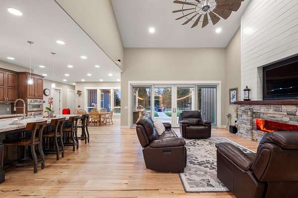 Private, serene country living with a secure gated access on 10 fully fenced acres with a beautiful custom 1 1/2 story builder owned home with all the bells & whistles! Experience Northwest "sanctuary setting" with abundant wildlife, gorgeous sunset views & relaxing outdoor living w/ wet bar BBQ station, ambiance lighting & your own private s'mores fire pit. Convenient access, minutes to the airport/FAFB/daily shopping & 25 minutes to downtown shopping, entertainment & hospitals. Great room concept w/ custom vapor mist fireplace, hickory wide plank flooring, radiant floor heating, custom light fixtures & access to the covered patio. Chef's kitchen with top of the line Thermador appliances, gas cook top w/ pot filler, dbl ovens, huge island w/ bar, walk-in pantry, coffee bar station & great built-ins! Rare main floor FIVE bedrooms, three full bathrooms & mud/laundry rm. Luxury master suite w/ dbl shower w/ 4 zone jets, dbl sinks & soaking tub. Two HUGE bonus rms & bathroom upstairs. Awesome 5 car garage/shop!