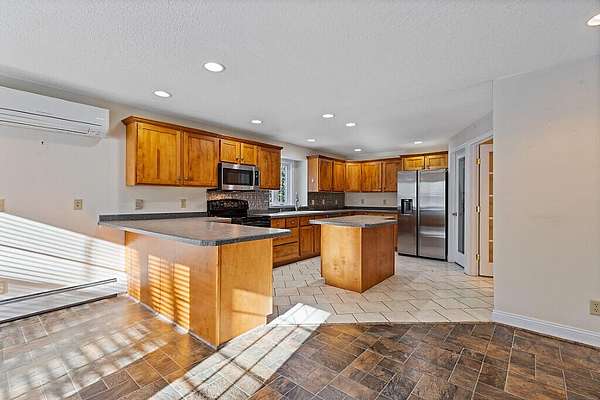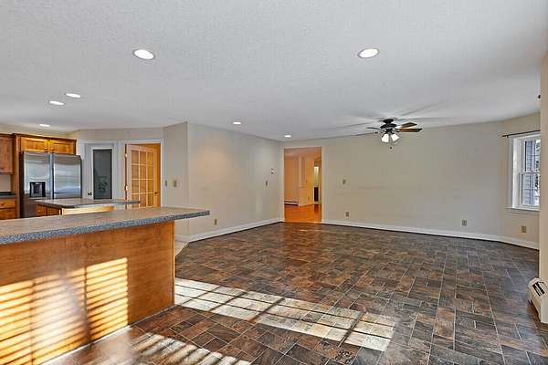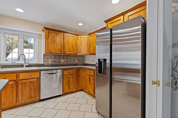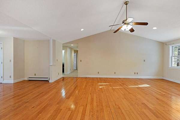 Spacious and well-crafted 3-bedroom, 2.5-bath contemporary ranch located in the desirable South Ridge Estates neighborhood of Winslow. Set on a private, wooded lot, this home features an open and bright floor plan with an oversized living room, cathedral ceilings, and gas fireplace. The kitchen offers abundant cabinetry, counter space, and a separate pantry, opening to the dining area. Quality craftsmanship throughout, including hardwood floors, custom windows and blinds, and a mudroom/laundry combination. Glass door leads to the back deck overlooking well-maintained lawns and seasonal flowering trees. Lower level includes a quiet bonus room with interior and exterior access, ideal for office or retreat space, plus a clean, dry basement with ample storage. Standby generator and two full-size oil tanks. Exceptionally maintained by the original owner and ready for its next chapter.