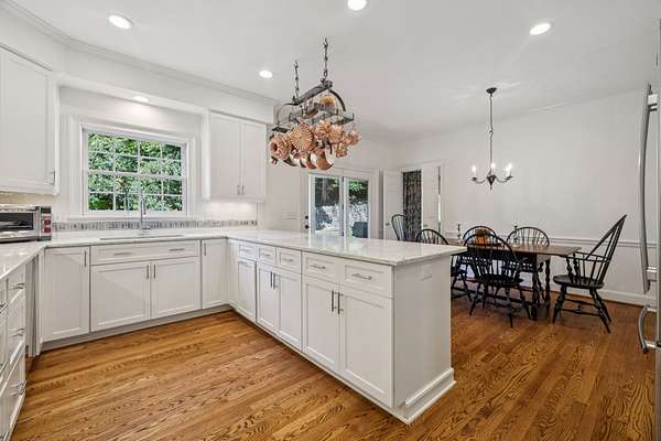 Light-filled rooms showcase rich hardwood floors, soaring ceilings,& thoughtful architectural detail. The renovated, expansive chef's kitchen features premium appliances, custom cabinetry, and seamless flow into warm and inviting living spaces--perfect for daily living and elegant entertaining. Bedrooms are generously scaled with private baths, while multiple gathering areas offer flexibility for family & guests. Meticulously maintained, space for expansion, move-in ready. Unique features such as rich wood paneling in formal office/library, 2 fulls baths ("yours & mine") in the primary suite, and spacious garage workshop.